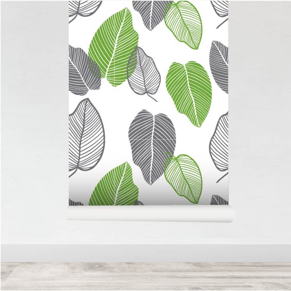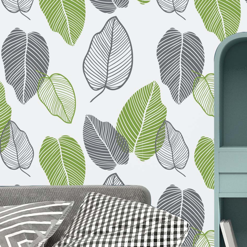 Papel pared Leaves green & grey